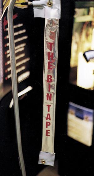 Bin Tape consists simply of a 3-in. wide fabric strip with an electric circuit inside. It simply hangs from the top of a bin down to the floor (or as far down as you'd like to measure). Pressure from grain on the Bin Tape sends an electric signal to a monitor outside the bin.