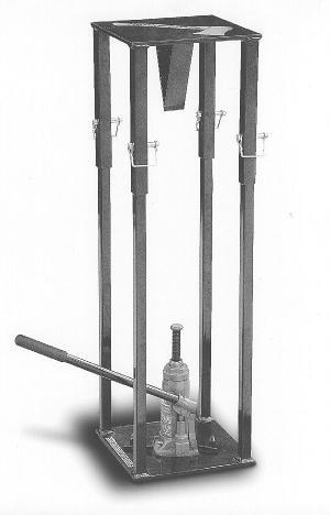 "It's much safer than an axe or powered splitter and it doesn't take up much room so you can keep it handy to use whenever you have time," says Bill Green, inventor. "I came up with the idea because I didn't want my kids to risk hurting themselves using a hatchet to split firewood. It'll take logs up to 9 1/2 in. in diameter. The jack raises 9 inches. Once you determine where to mount the pins in the legs you can use the jack's screw to make the final adjustment. On most jacks the screw can be raised about 3 1/2 inches."