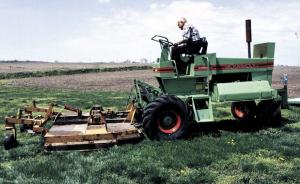 This year he decided to turn an Owatonna hydrostatic-drive swather into a big self-propelled mower with a 10-ft. Woods cutting deck. He got the basic idea from reading about Minnesota farmer Jules Jacobson, featured in FARM SHOW's Vol. 22, No. 4.