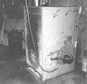 In the burn chamber is a burning pan, which Bennett made from a piece of 10-in. channel iron cut to the length of the stove. He welded a piece of iron over each end to make an enclosed pan. Oil simply runs into the pan.