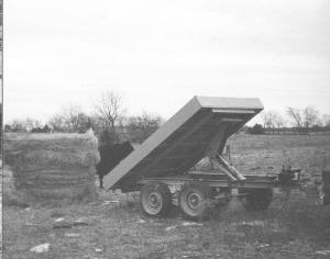Inexpensive "Do-It-Yourself" Dump Trailer WAGONS/TRAILERS New Wagons 23-6-18 "This trailer hauls 3-ton gravel loads, big round bales, and firewood. What's great about it is that it dumps hydraulically but I can pull it behind my pickup," says Gary Skinner, Fort Scott, Kan., about his home-built trailer with self-contained hydraulics.