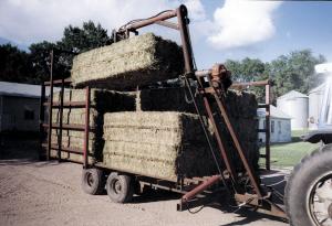 " I wanted a machine that would pick up and haul a large load of square bales over a long distance because I often work alone in the fields, and I don't have anyone to drive wagons," says Carls.