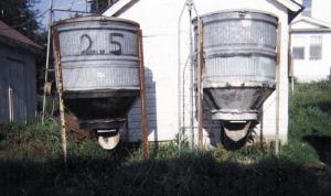 Feed Bins Made Out Of Old Hog Feeders