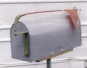 Our simple mailbox flag bolts to the back of the mailbox. The spring-loaded flag is bent down and slipped through a bracket on the door. When the door is opened, the flag stands straight up. Fits standard size mailboxes. Sells for $10. (Cory Jensen, Country Enterprises, Inc., 25809 Duncan Ave., Lucan, MN 56255 ph 800 349-8752 or 507 747-2574)