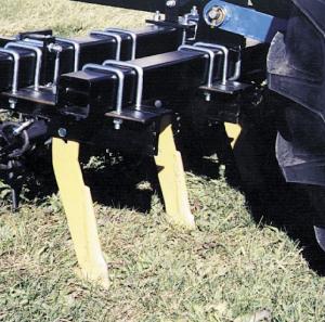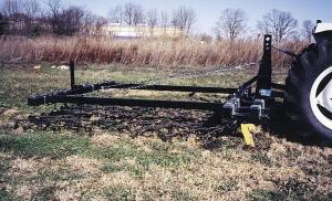 Anyone with livestock on pasture should take a look at our new B-33 Mole renovator attachment for running ahead of our MultiFlex heavy-duty 3-pt. pasture harrows. The mole renovator loosens compacted soil to a depth of 4 to 6 in., allowing water and air to soak into the soil upon contact. It reduces runoff. The harrow behind mixes residue with surface soil. The mole knife does not disturb the surface, so you can broadcast seed before running the harrow equipped with the mole knives.