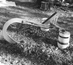 The belly-mounted subsoiler shank was originally designed only for Allis-Chalmers tractors and went back as far as the forward part of the drawbar. It was raised or lowered by a pair of lift arms. Seltzer shortened the shank up and welded a heavy-duty steel frame on front of it that fits any Cat. II 3-pt. hitch. He also welded a pair of 3/4-in. dia. rebar rods onto each side so that the shank pulls off the sides of the frame as well as the center of it.