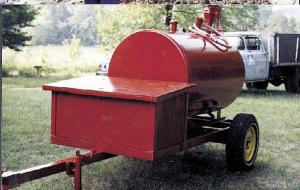 Portable Gas Tank With Front-Mounted Tool Box FARM SHOP Miscellaneous 24-1-33 I wish I had made this portable gas tank with front-mounted tool box years ago. It's very handy when we're doing fieldwork - I just pull it out to the field and leave it there. It saves a lot of tractor riding back and forth just to get gas. The tank is a standard 500-gal. fuel tank that mounts directly over the axle, which came off a pickup. An inexpensive hand-cranked pump mounts on top of the tank.