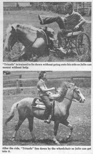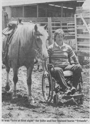 Some three and a half years ago, Julie Quirk, of Midwest City, Okla., was injured in a horseback riding accident which left her paralyzed from the waist down. She still had the desire to ride, and through the help of a friend was back in the saddle just two years after the accident.