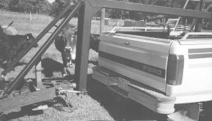 "It works slick and takes only a few minutes to switch from one trailer to another," says Cooper. "I've used this hitch for about 1 1/2 years now with no problems. I prefer a gooseneck hitch because the gooseneck distributes the trailer's weight more evenly on the pickup, which results in a smoother ride. Also, you can turn shorter. There's a lot of good used ball hitch-type trailers that can be bought cheap so I think my idea could help a lot of people.