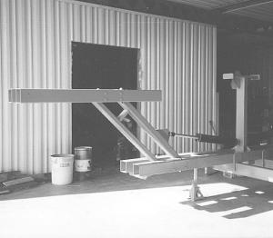 Jamison started from scratch, building a frame from 7 by 7-in. steel tubing. The frame actually consists of three sets of two pieces of tubing separated by a gap of 8-in. The center set is 15 ft. wide, and each wing set is 7.5 ft wide. Two sets of parallel arms mounted on brass bushings raise the O-rings up over the center toolbar. A 5-in. cylinder on each side provides the lifting power. The lift arms are made from heavy 6 by 4 and 6 by 3-in. sq. tubing.