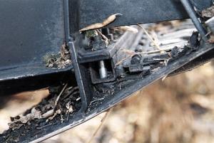 To give the sickle room to move back and forth, they had to cut a small notch in the header's end divider. They had a local machine and welding shop make the cut and then reinforce the divider so there'd be less likelihood it would break if it hit something.