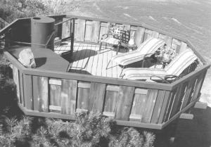 Keck recently sent FARM SHOW photos of the octagonal-shaped deck, which measures 14 ft. wide by 18 ft. long. It's built from cedar wood with a steel frame. It's supported by a 24-in. dia. steel pipe and a pair of steel legs. A 72-in. dia. spiral staircase wraps around the pipe. The steps and flooring on the deck are made from Trex - a mix of recycled plastic and wood.