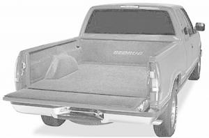 The one-piece, custom molded mat is designed to cover the pickup's floor and side walls. No tools or drilling are required. It consists of a polyester carpet laminated to a 3/4-in. thick closed-cell polyethylene foam pad. When kneeling, sitting, or lying on the floor you can't even feel the floor ribs.