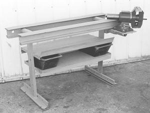 that swivels on a pair of telescoping pipes, allowing vertical or horizontal clamping. It can also be removed for full flat surface welding. The biggest advantage of this welding bench design is that I can't put a lot of junk on it that would obstruct my welding work."