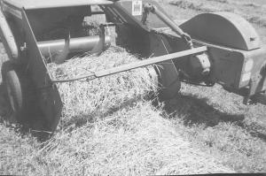 "I've used it for about six years with no problems," says Bilodeau. "It works great on hay and also on windrowed grain. The only limitation is that it tends to plug up in real heavy windrows. I use a small Farmall B tractor to pull it. I run the tractor fast enough so that the material is picked up and flows right on through.
