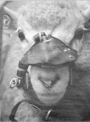 According to a story in the New Zealand magazine Country-Wide, researchers for a livestock association are trying to reduce the amount of methane gas burped out by sheep. To do that, the sheep are fitted with a methane-detecting muzzle.