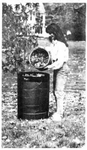 The "Easy Bagger" consists simply of a flexible sheet of lightweight plastic about 30 by 68 in. in size. The curled-up plastic sheet simply slips inside a plastic garbage bag, holding the top open so you can dump into it with both hands free. Once the bag is full, you just slip out the liner and tie the bag.