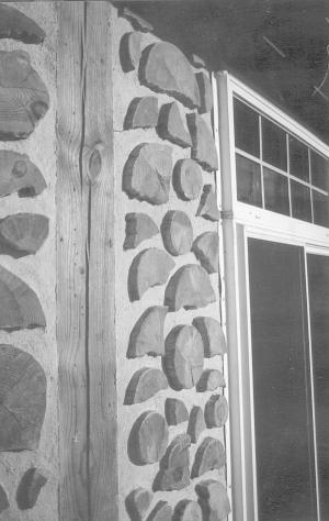 "The paper-enhanced mortar retards mortar setup. This reduces the number of shrinkage cracks you normally get with mortar and cordwood," says Stankevitz. "It also lightens up the wall and produces a nicer color when it has dried down. I also tried sawdust and cement, but I think the paper mortar sticks to the cordwood better."