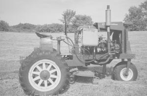 The single wheel front end is from an F-12 Farmall. Although Smith thinks the pto shaft was put on by the original builder, a hydraulic pump on it would have been added years later. Since finding and restoring the old tractor, Smith has added a 55-in. John Deere belly mower with a mechanical lift that he also rescued from the scrap pile.