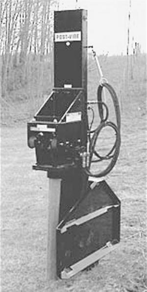 "One big advantage of the design is that you can use it in hard ground without worrying about shattering the post. Another advantage is that it mounts right on a skid loader and isn't as wide as a pull-type model. As a result, you can build a fence without having to cut down as many trees."