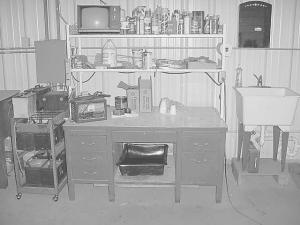 I Bought This Desk Used To Store Electrical Parts FARM SHOP Parts 27-4-36 Cary Urka, Brethren, Mich.: "I bought this steel rack at an auction for $50, painted it, and bolted it to my shop floor. The rack measures 12 ft. wide, 3 ft. deep, and 7 ft. high. Works great for storing miscellaneous objects, pieces of steel, etc. Bins on one end of the rack are used to store pipe fittings. I mounted a punching bag on the rack for occasional workouts.