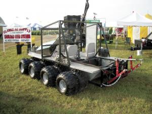 The Land Tamer has four times more horsepower and torque than a typical 4-wheeler, with a liquid-cooled 4-cyl. Nissan gas engine (80 hp and 85 ft. lbs. torque) or an optional VW turbo diesel (79 hp and 114 ft. lbs. of torque). It's available either as a 6-WD or 8-WD with a cargo capacity of 1,100 lbs. and 2,000 lbs., respectively.