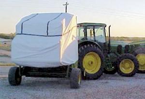 "It took 2 1/2 years to work out the design and get a patent," recalls Vogeler. The former truck driver is now busy overseeing production and marketing of his weatherproof tarps. With their trademark ratchet and "D" ring strap design, Vogeler's tarps are used to cover seed corn pallets, balers, drills and planters. Vogeler is also making grass bags for lawn mowers, rally flags for high schools and ponchos - all from making larger covers. Pallet tarps sell for $125, while baler covers run $400. Ponchos can be had for $30.