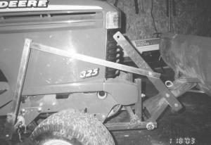 He also mounted a 42-in. Snapper blade on front of the tractor. The front part of the mounting bracket is made from 3/16-in. thick, 1 1/4-in. sq. tubing and attaches to the tractor frame with four bolts. A rod bolted to the hydraulic deck lift mechanism on the tractor is used to raise and lower the blade. "It was a very inexpensive way to make a front blade for my tractor. It's very sturdy in all types of terrain," says Rahman.