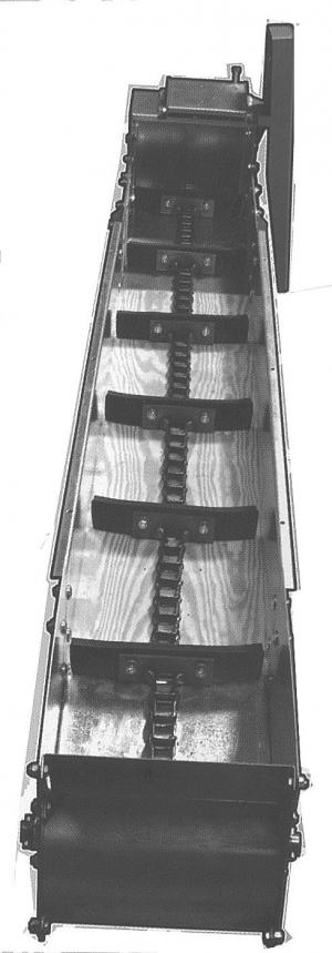 Three different models are available. Model LC79 is designed for applications up to 40 ft. long. It has 10-in. rubber paddles inside a trough that's 10 3/4 in. wide. Model C9412 is made of 12-ga. galvanized steel with plywood floors and a drive unit with an enclosed roller chain reduction drive running in oil. The pintle drag chain has 12-in. rubber paddles inside a 12 3/4-in. wide trough. It's designed for applications up to 100 ft. long.
