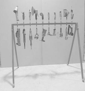 Inventor Jerry Walstad says, "It works great for storing air ratchets, grinders, hammers, saws and so on. There's no need to go through toolbox drawers looking for the tool you need. You can roll the stand right up to where you're working. An optional heavy duty shelf snaps onto the base of the unit for storing small items."