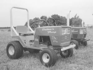Snellings got the 10-year-old tractors free from friends. He removed the mower decks and had a local muffler shop bend 2-in. dia. tubing into rollbars. He replaced the original seats with new ones and used 1 1/2-in., 11-gauge sq. tubing to make front bumpers. He replaced the original muffler with a 2-in. dia. tractor muffler, which is bent so exhaust fumes are diverted to the side. The muffler is welded to the original mounting bracket.