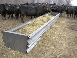 "They're wider and deeper than conventional bunks, which allows more animals to feed from them," says Pickart. "Our bunk has room for 20 animals but holds enough feed for 30. Such capacity makes it much more practical to use big bale processors that deliver fluffy, high rough rations with ground hay and silage. You may only have to feed your animals once a day. And, you don't need as many bunks in your feedlot."