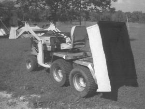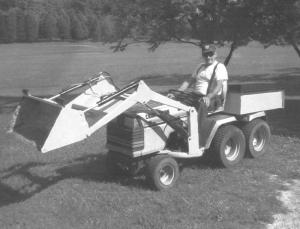 He started with a Sears Craftsman 18 hp garden tractor equipped with a 6-speed transmission and front-end loader.