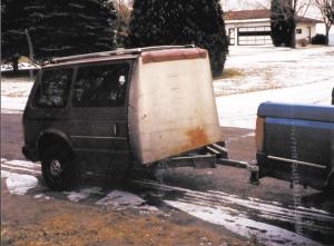 I cut the van off right behind the driver's seat, bent the light frame on both sides into a hitch, and added a 2 by 2-in. steel beam down the middle for a hitch. I had to reinforce the frame, and added a steel plate to the floor of the van to get strength to fasten the 2-in. sq. beam to.