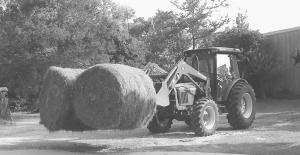 "It greatly speeds up bale loading and unloading. If I want I can carry a bale behind the tractor, too, and move three bales at a time," says Truly. "The two spears also work well to move brush. When used with a piece of plywood, the spears also make an excellent elevated work station.