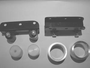 The kit consists of blocks which are a coil spacer and strut spacer that raise the struts and springs on the front suspension, and a bracket at the rear that relocates the shock, giving added height.
