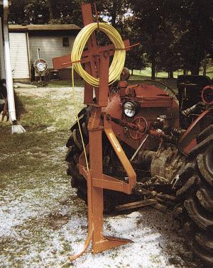 Donald Feilbach, Piasa, Ill., put a spool holder on his King Kutter subsoiler so it could bury electric cable 1 ft. underground. After the cable is laid, he drives the tractor wheels over the trench to pack the ground down. "You don't even know it's been disturbed," he says.