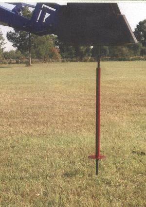He simply slides the guide pipe over the post and has someone on the tractor push the T-post into the ground. With the ring as a guide, all the posts are the same height.