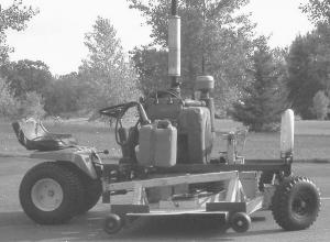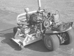 Although Hargreaves is able to use the clutch and transmission on the Simplicity, the mower is direct-driven from the engine. Once it starts, it goes. For both safety and convenience, he plans to put a clutch on the motor or on the center spindle to control the blades. He also plans to put hydrostatic drives on the rig's rear wheels.