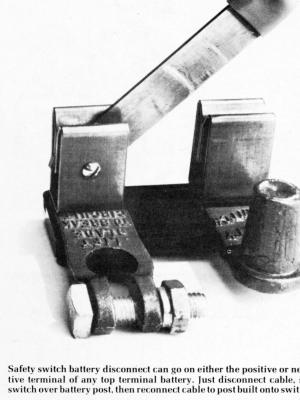 This new Paragon safety switch attaches to any top terminal post battery, providing a quick means of disconnecting the battery.