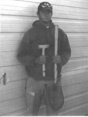 Dearden fashioned a hammer out of pipe and drilled a matching hole through both the hammer handle and the extension pipe. A 1/4-in. clip pin holds the two tools together into an adult-sized shovel.
