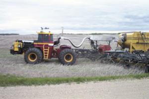 Carlisle uses a Seedmaster 60-ft. air seeder with 12-in. spacings, and pulls it with a Deere 9520 tractor equipped with a 450 hp diesel engine.