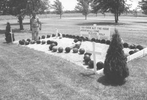 He used a total of 59 balls to make the rosary. He ran links of chains between the balls and laid it all out on a bed of gravel.