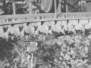 "To clear the 30 acres, we started by cutting the trees down by hand with a chainsaw at ground level, piling them with a backhoe and then burning them. The remaining stumps were up to 14 in. across," he explains. "Then, with the stump grinder, we found that a 14-in. stump could be removed in two or three minutes. Anything under 4 in. usually only required a slight reduction in the 1 1/2 mph forward speed. The grinder has maximum working depth (below ground) of 8 in., but Ashton operated at a 6-in. level. Even though some debris is left, one pass with a one-way disk was enough to plant the field."