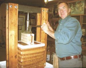 All wood parts, including the separator boards, the press base and uprights, are sealed with paraffin to keep apple cider from soaking in. Chandler suggests warming the wood and the brush before applying the melted wax. Having everything warm encourages the hot wax to spread out and coat the wood.