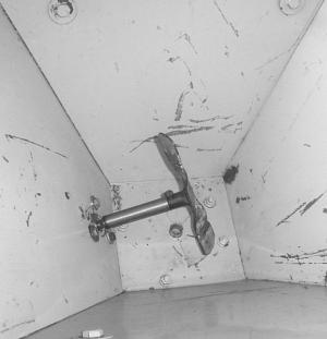 To make the impeller he heated up an 8-in. length of flat metal and twisted it, then welded it onto a shaft on the wiper motor. Then he drilled a hole through the hopper and bolted the wiper motor onto the hopper just above the propeller. The shaft is connected to a right angle gear reduction box which slows the impeller down to 400 rpm's. There's about 2 in. of clearance between the impeller and the bottom of the hopper.