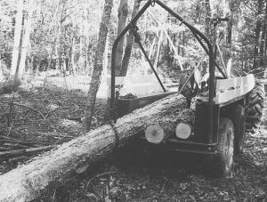 "It's built somewhat similar to big commercial self-loading log trailers for professional loggers, but on a smaller scale. It can handle logs up to 30 ft. long," says Goetsch. "I use my Ford 8N tractor to pull it so I can travel on logging roads only 6 ft. wide."