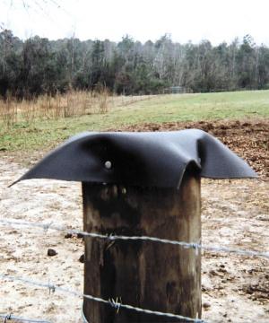 William Johnson got tired of having to replace rotten wooden posts all the time. So the Wiggins, Miss., farmer came up with a cheap solution to preserve them - he simply nails a section of rubber belting on top of posts to keep rain off.