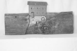 "One of my first barn plaques was a Nebraska barn made for Sand Creek Post and Beam Co.," Harrison says. "I have also recently done a wall plaque of Beck's Mill, which is a mill in southern Indiana, which is being restored."