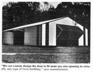 "We can custom design the door to fit most any size opening in virtually all types of farm buildings, whether quonset, pole, steel, wood or whatever. We have a crew to do the installation, or you can buy a kit and install the door yourself in less than a day," says Schweiss.